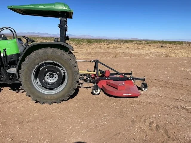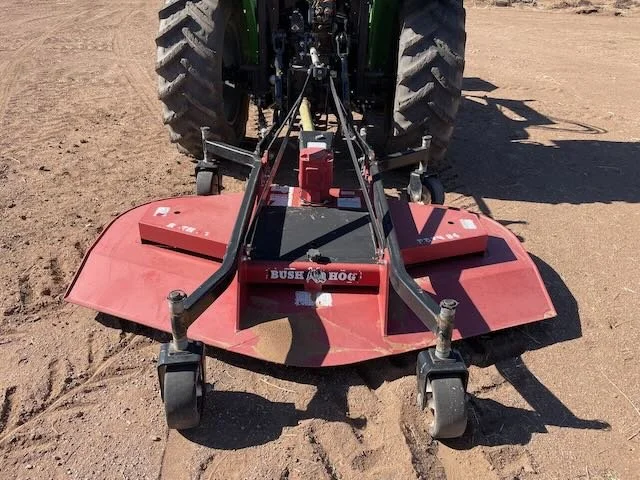 Bush Hog Mower.This is a Bush Hog finish mower. It is 7 feet wide with three blades. It cuts light brush and grass more evenly than a traditional heavy duty brush hog.